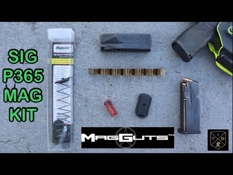 The 2+ magazine conversion kit for a Sig Sauer P365 and the P365Xl, MagGuts gives you a new follower, spring, and base pad for around $34. Simply replace those three parts in your magazine and you will get 2+ extra rounds in your magazine, are they reliable is the question.